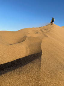 Zvuk je slyšet i několik kilometrů daleko. Stojíme nahoře, písek nám pálí chodidla a smějeme se, protože tohle je koncert, na který nepotřebuješ vstupenku. Stačí odvaha sklouznout dolů a nechat poušť, aby zpívala sama.