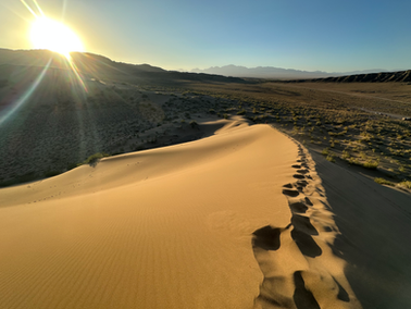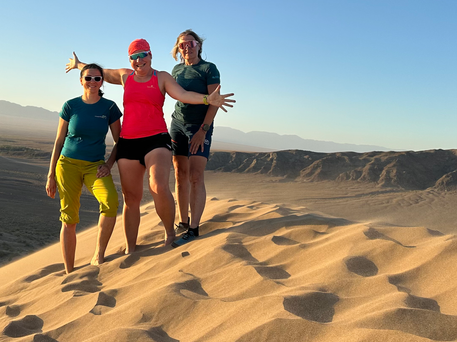 A pak, střih. Z horského dramatu rovnou do písku. V národním parku Altyn-Emel stojí duna, která umí zpívat. Zní to jako vtip, dokud nevylezeš nahoru a nesjedeš dolů. A tehdy to začne: hluboký tón, rezonující v písku i v těle. Varhany, letadlo, možná i sbor neviditelných hlasů.