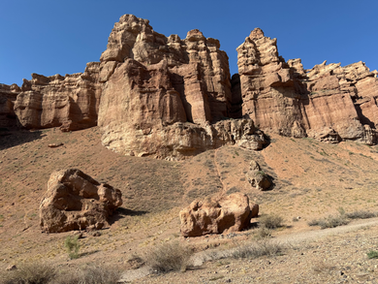 Procházet se mezi červenými skalami Altyn-Emel je zážitek, který v sobě nese neuvěřitelnou krásu, ale také extrémní výzvu. S každým krokem, jak se slunce dostávalo výš na oblohu, teplota kolem nás stoupala až na 40 stupňů Celsia, což znamenalo, že každý krok do těchto magických skal byl zároveň zápasem s horkem.